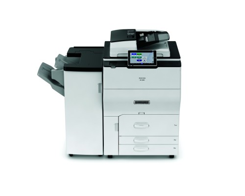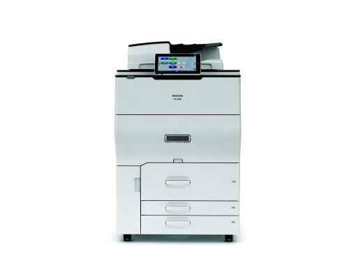 IM C8000 80ppm A3 Colour MFD. Includes Copy, Print and Scan; 10.1" Smart operation panel (Tiltable), ACT 1.1, RSI and Intelligent Support. 220 sheet SPDF scans up to 240ipm. Standard paper capacity 3,700 (1,250 x2 tandem, 550 x2, 100 sheet bypass tray). Duplex. 2 x 320GB HDD, 4GB Memory and Gigabit Ethernet. USB 2.0, SD card slot and Wireless Direct for mobile print. Operating instructions included. Please ensure correct mandatory are ordered for the required configuration.